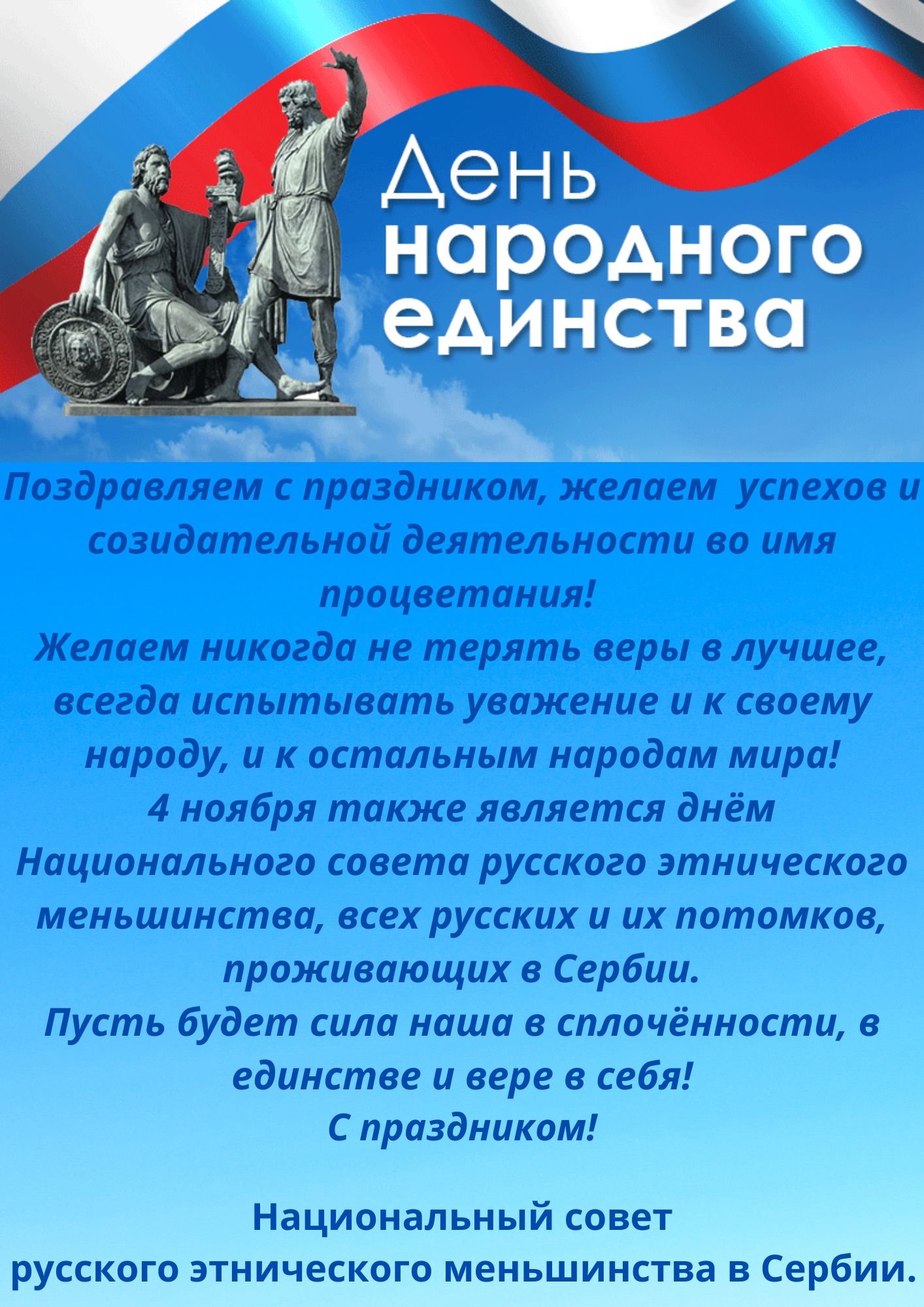 4 ноября — это день Национального совета русского этнического меньшинства и всех русских и их потомков, проживающих в Сербии.