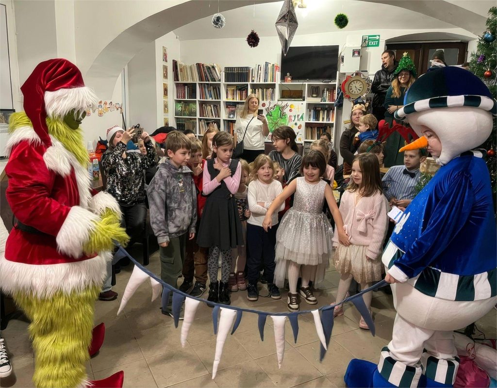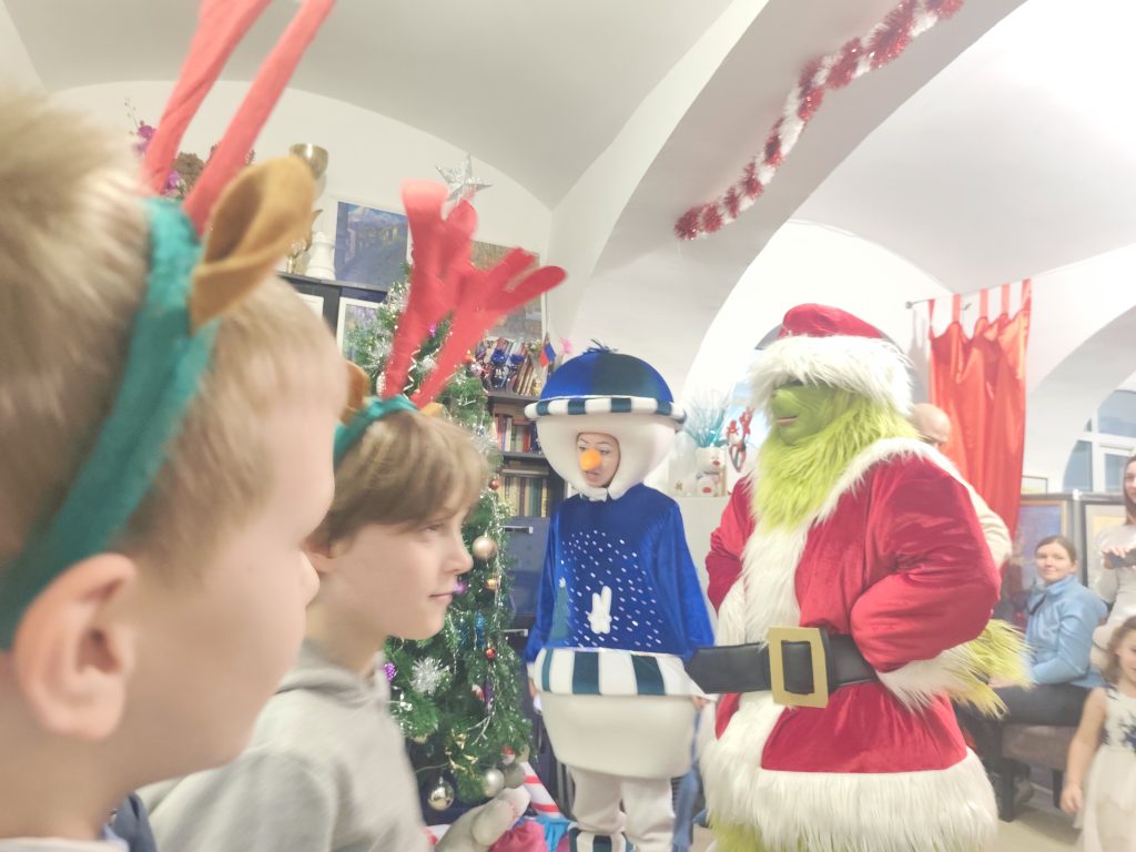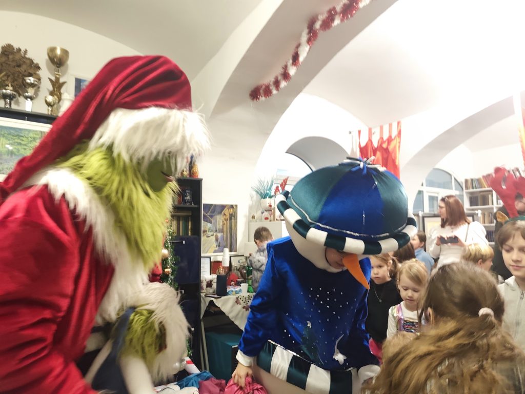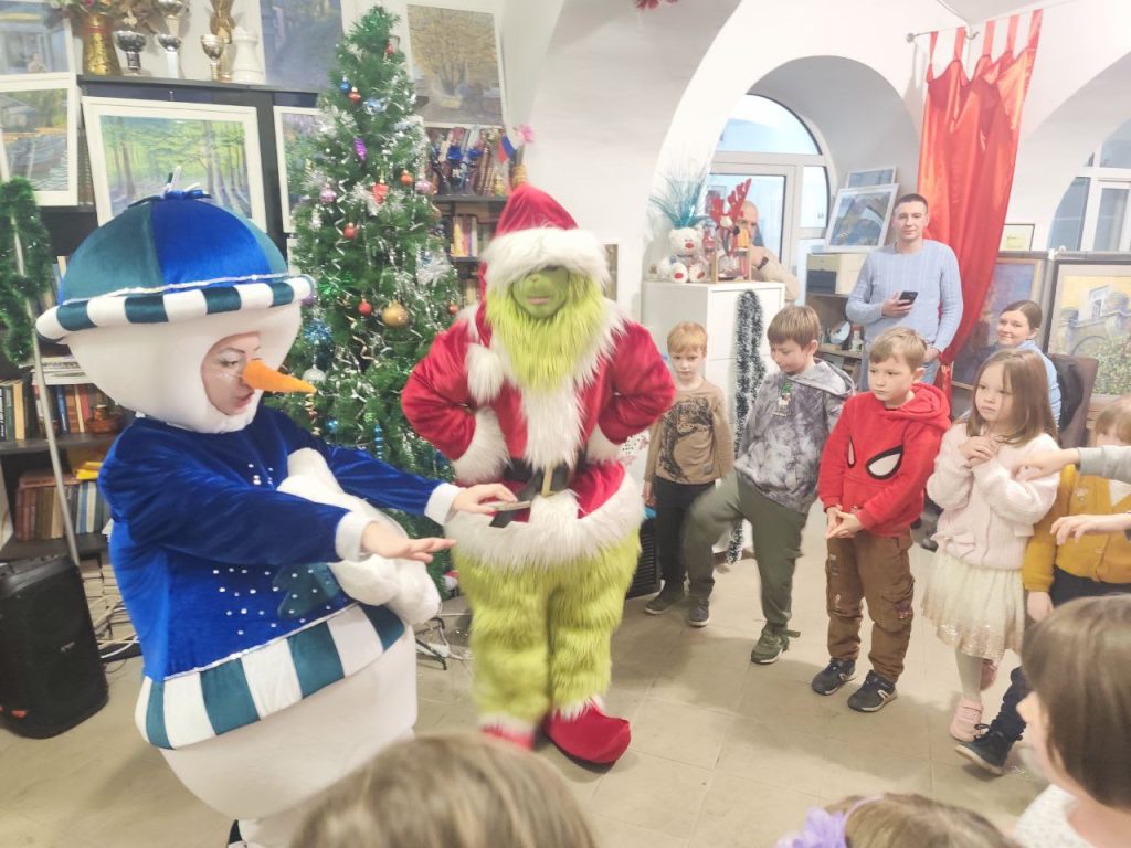 Двери библиотеки в этот день открылись для волшебства. Детей встретили любимые персонажи: добрый Дед Мороз со своей внучкой Снегурочкой, нарядная и жизнерадостная Ёлка, весёлый Снеговик и даже озорной злодей Гринч, пытавшийся испортить праздник.