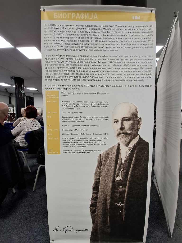 Изложбу је допунио документарни филм о судбини Краснова и његове породице, о његовом раду у Јалти и Ливадији, емиграцији и великом доприносу српској архитектури.